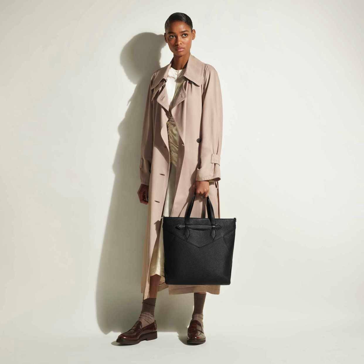 以焦糖棕麂皮打造的新款万宝龙托特包采用竖款廓型,沿用经典信封和笔咀造型设计细节,配备可拆卸肩带,精准契合都市精英的多元生活方式。新款托特包同样提供经典黑色的粒纹皮质选择,兼顾格调与日常实用性。