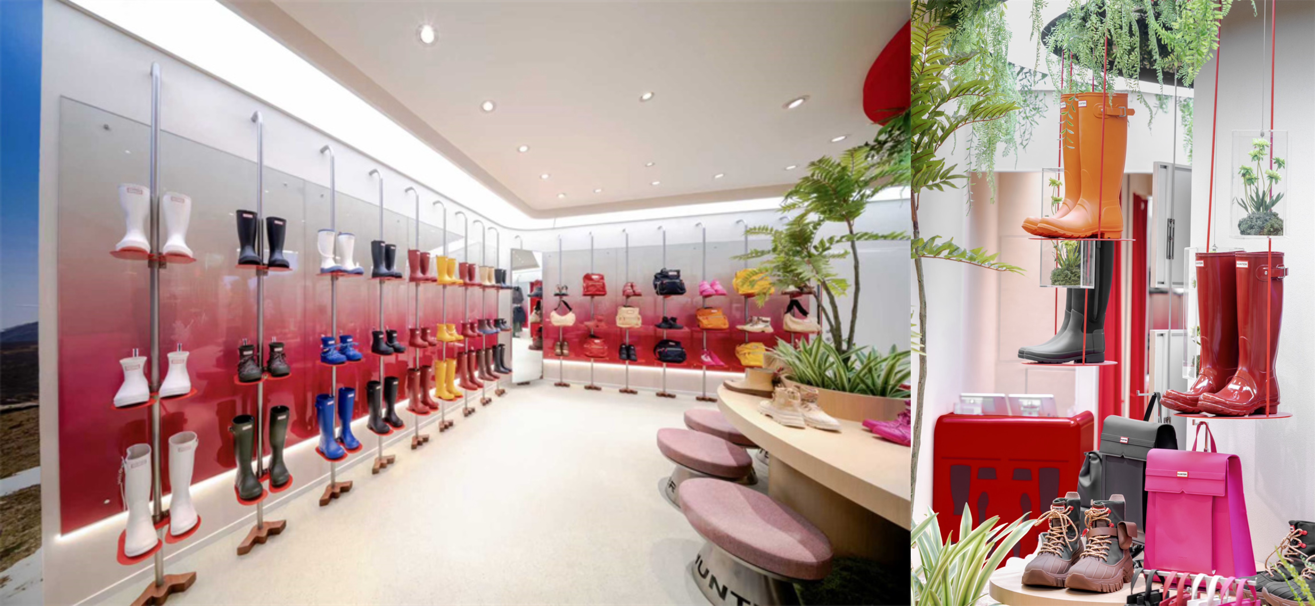 作为品牌文化的重要载体,该店汇集HUNTER全系列产品,从经典雨靴、猎鸭靴、雪地靴到功能背包与都市功能服饰,满足消费者多样化的穿着需求。每个产品区域都通过场景化陈列展现其使用场景,让顾客在购物过程中自然融入品牌打造的户外生活方式。