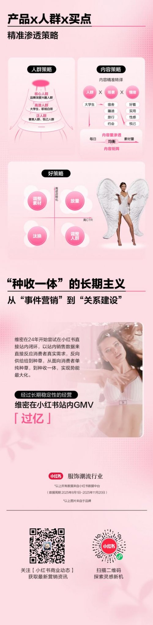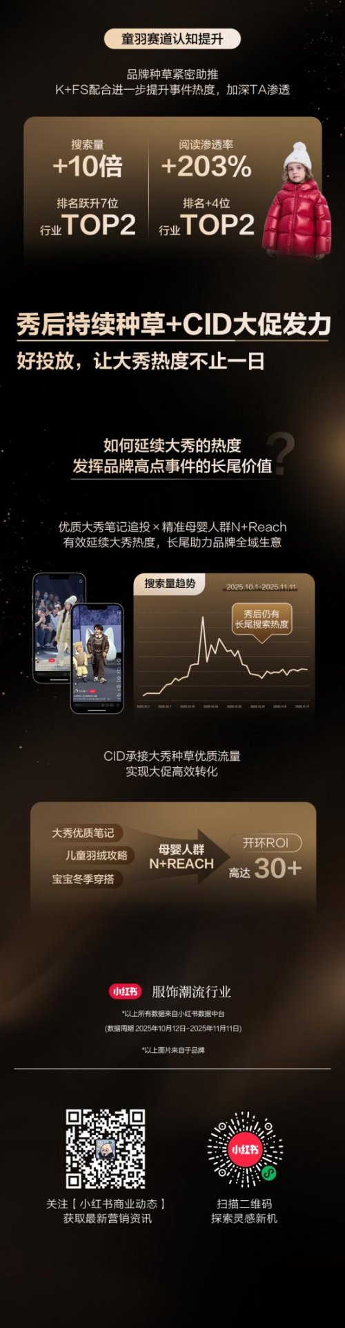 本期带来「小红书品牌大事件秀场新玩法」,以秀场多维视角出发,聚焦维多利亚的秘密&高梵KIDS两大品牌秀场闪耀时刻,深度探索小红书前沿秀场趋势及多元种草玩法,帮助更多品牌精准把握秀场种草新动向,找到人群资产沉淀,以及声量生意双向进阶的秀场营销解决方案。