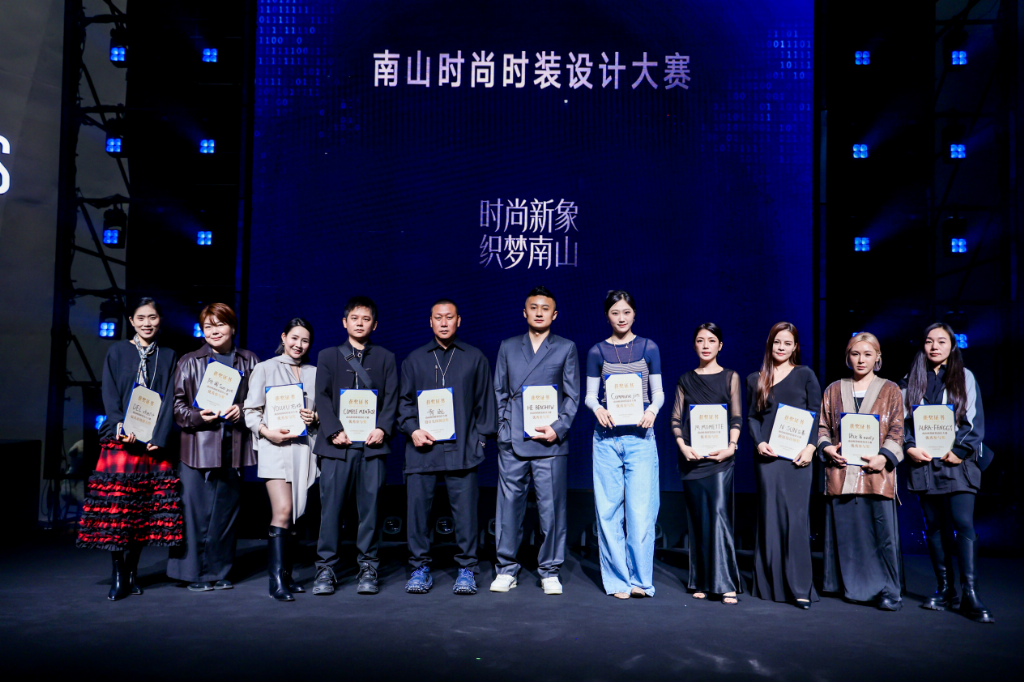 盛典上,两场主题秀精彩纷呈。一场由新生代品牌联袂呈现,MMOMETTE、AURA-FENGGY、Dhx-evvly、N·SUN立善、HEBEN SHOW、Commune.Jin等品牌凭借惊艳表现脱颖而出,展现了新生设计力量的蓬勃朝气与无限潜力;另一场则汇集了肯逊、所阅、CPT、右续、DEL chen+、SUUYUUWANG等优质原创品牌,这些作品,既体现了赛事对本土原创力量的深度挖掘,也彰显了南山时尚产业的雄厚基础。展演盛典圆满落幕之际,组委会为脱颖而出的12强优秀创作者隆重颁发荣誉证书,以表彰其在时尚设计领域的亮眼实力与创新突破。其中,设计先锋创意奖由肯逊品牌摘得,其作品以大胆的设计构想与先锋性表达突破传统边界;最具市场潜力奖花落DEL chen+,凭借对市场需求的精准把握与商业价值的潜力空间获得认可;新锐设计师奖被N·SUN立善收入囊中,彰显了新生代设计力量的创新活力与成长潜力。此外,大赛还评选出九项优秀参与奖,授予AURA-FENGGY、Dhx-evvly、HEBEN SHOW、Commune.jin、所阅、CPT、右续、SUUYUUWANG、MMOMETTE等品牌,表彰其在赛事中的优秀表现与扎实的设计实力,每一份荣誉都承载着对设计师创作初心与专业能力的高度认可。